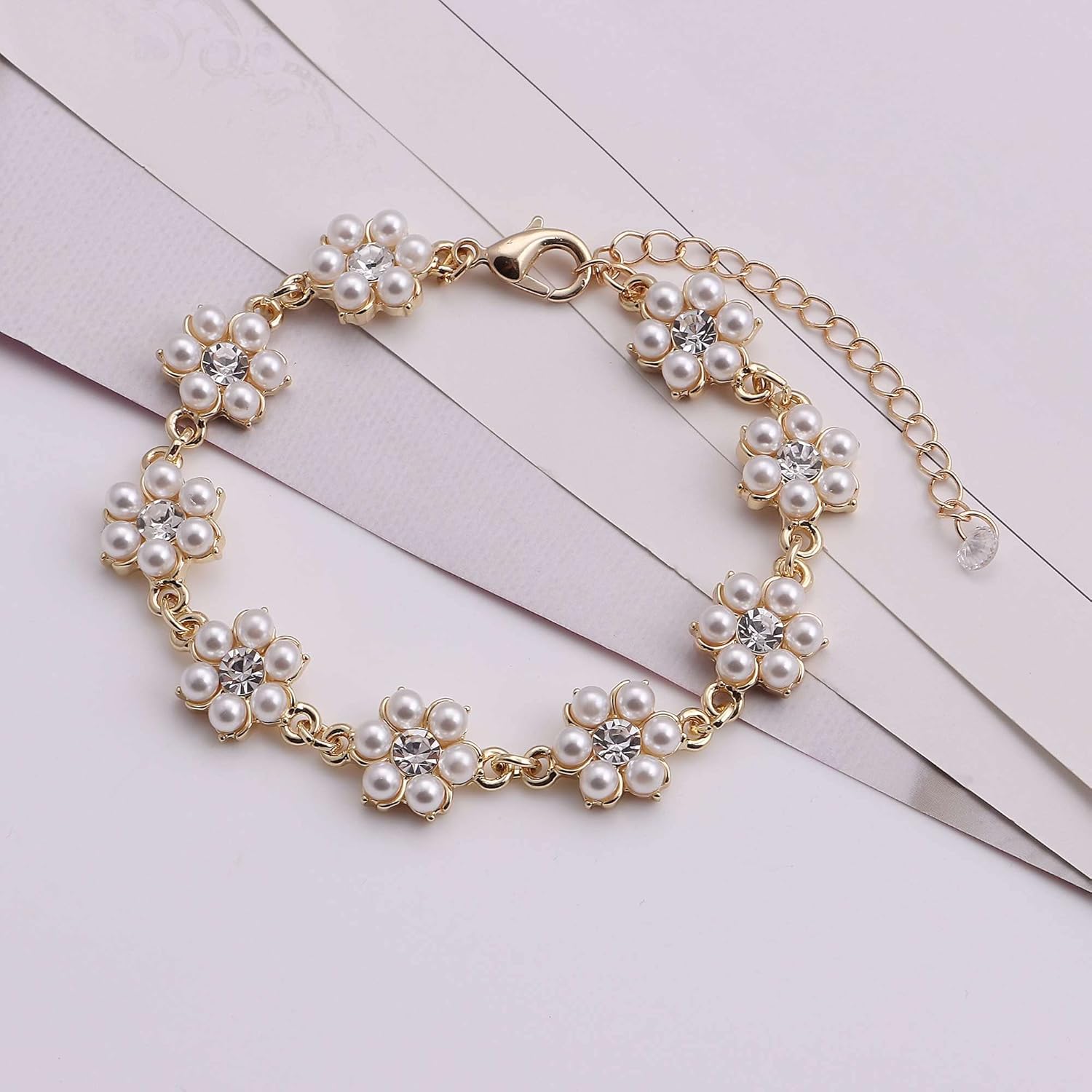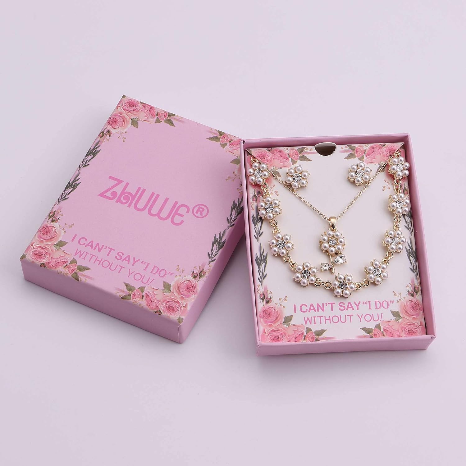 Bridesmaid Jewelry Set for Wedding, 18K Gold or Rose Gold or Silver Plated Flower Pendant with Simulate Pearl Necklace Earring Bracelet Set for Women Gift