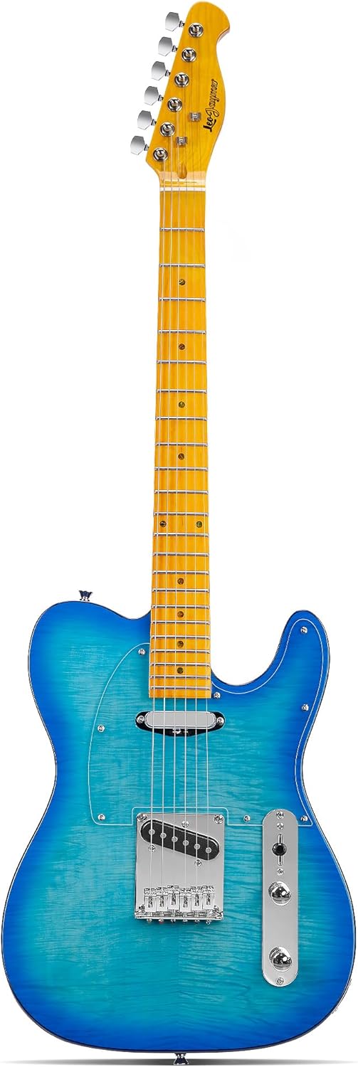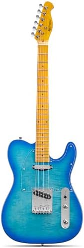 Leo Jaymz TL Style Electric Guitar with Flame Maple Top - High Gloss Mahogany Body and Hard Maple Neck - High Transparent Acrylic Pickguard (Transparent Blue Burst)