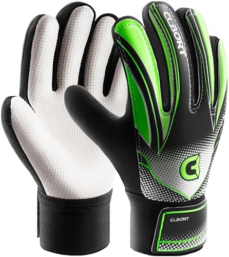 Ideal Gift for Kids Youth Goalie: Clbort youth kids soccer goalie gloves are available in 4 sizes, professionally designed for kids and teens (kids 6-10 & teens 10-17) for daily training and soccer games. By virtue of the eye-catching design, excellent grip and protection, these youth goalkeeper gloves are ideal festival or birthday gifts for kids, youth goalies and soccer beginners.