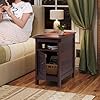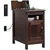 WLIVE End Table with Charging Station, Narrow Side Table for Living Room, Farmhouse Night Stand with Storage, Small Wooden Cabinet with USB Ports and Outlets for Living Room and Bedroom, Espresso