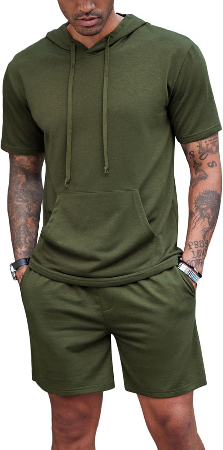 COOFANDY Men's Tracksuit 2 Piece Hooded Athletic Sweatsuit Short Sleeve Casual Sports Hoodie Shorts Set