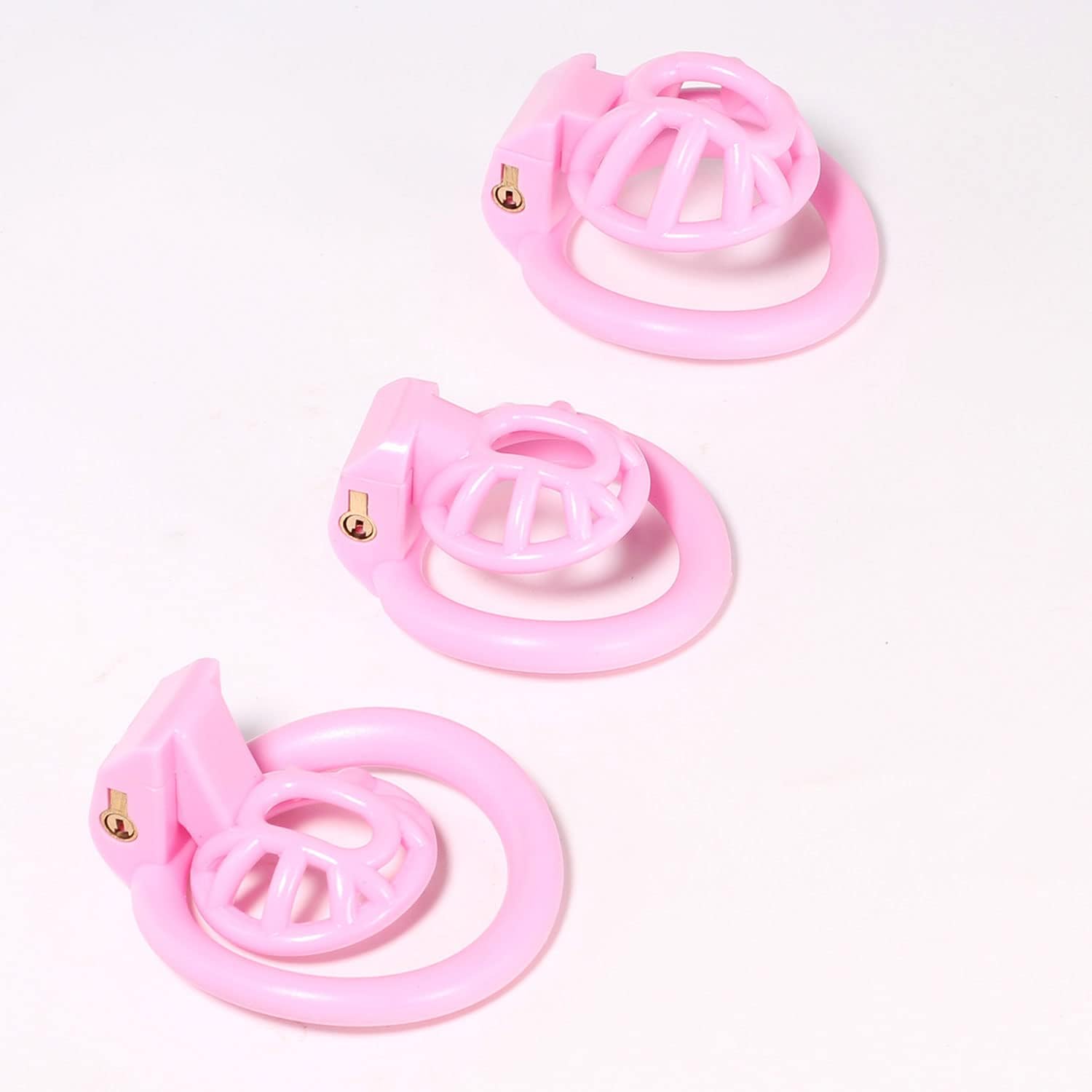 FREDORCH Super Small Penis Ring Sissy Chastity Cage,Locked in Male Chastity Device with 4 Base Ring (M-Medium, Pink)