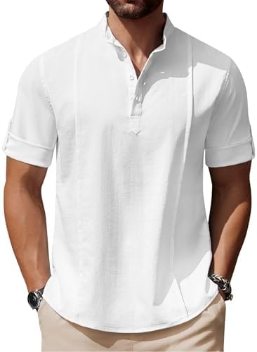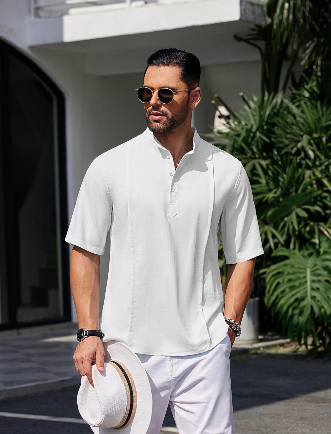 COOFANDY Men's Henley T-Shirts Short Sleeve Casual Button Henley Shirts Band Collar Tee Summer Beach Hippie Shirts