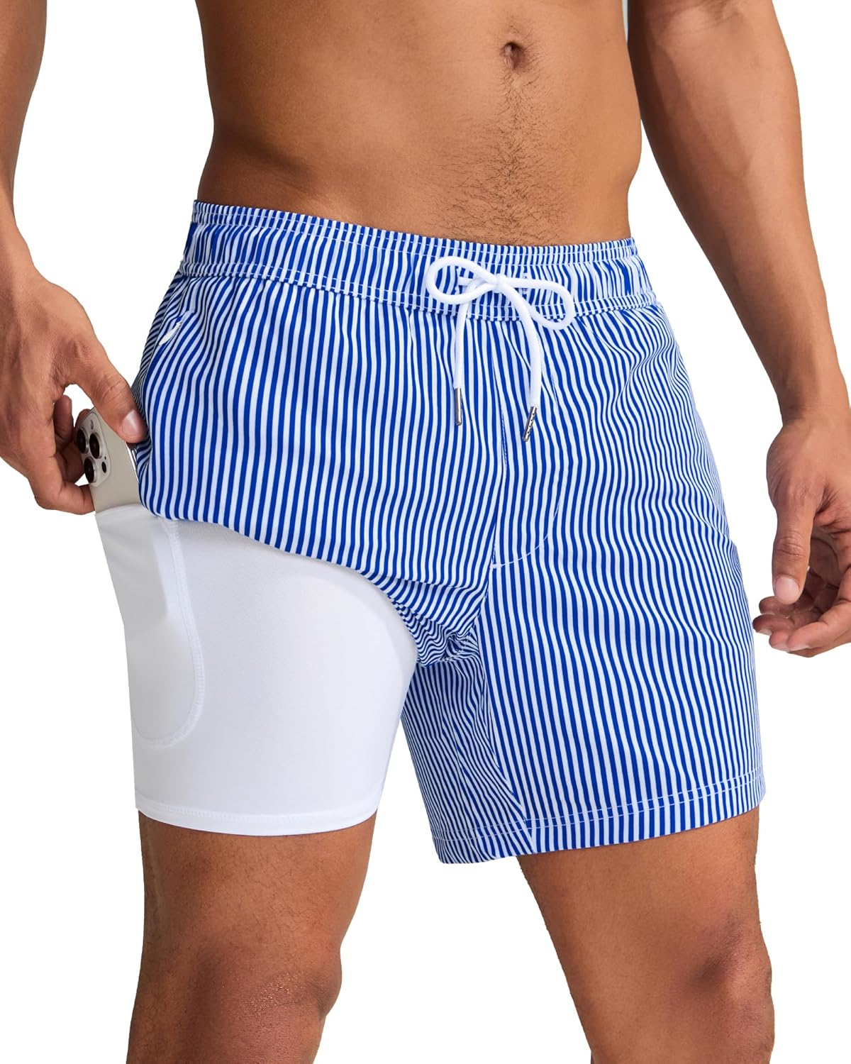 maamgic Mens Swim Trunks with Compression Liner 5 Inch, Quick Dry Bathing Suit with Zipper Pockets, No-Chafing Swim Shorts