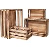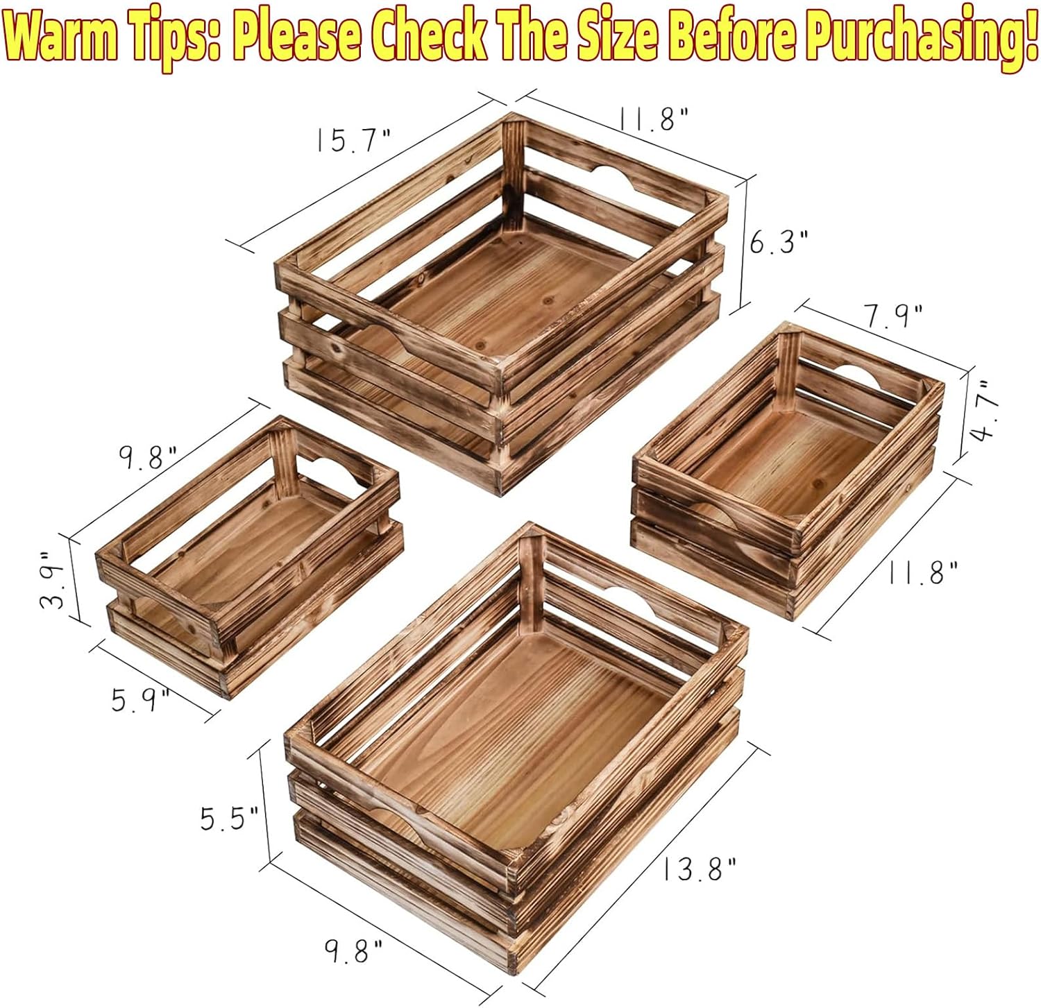 Set of 4 Large Torched Wood Decorative Storage Crates, Nesting Wooden Crates for Display Rustic, Farmhouse Wooden Storage Container Boxes Made from 100% Wood