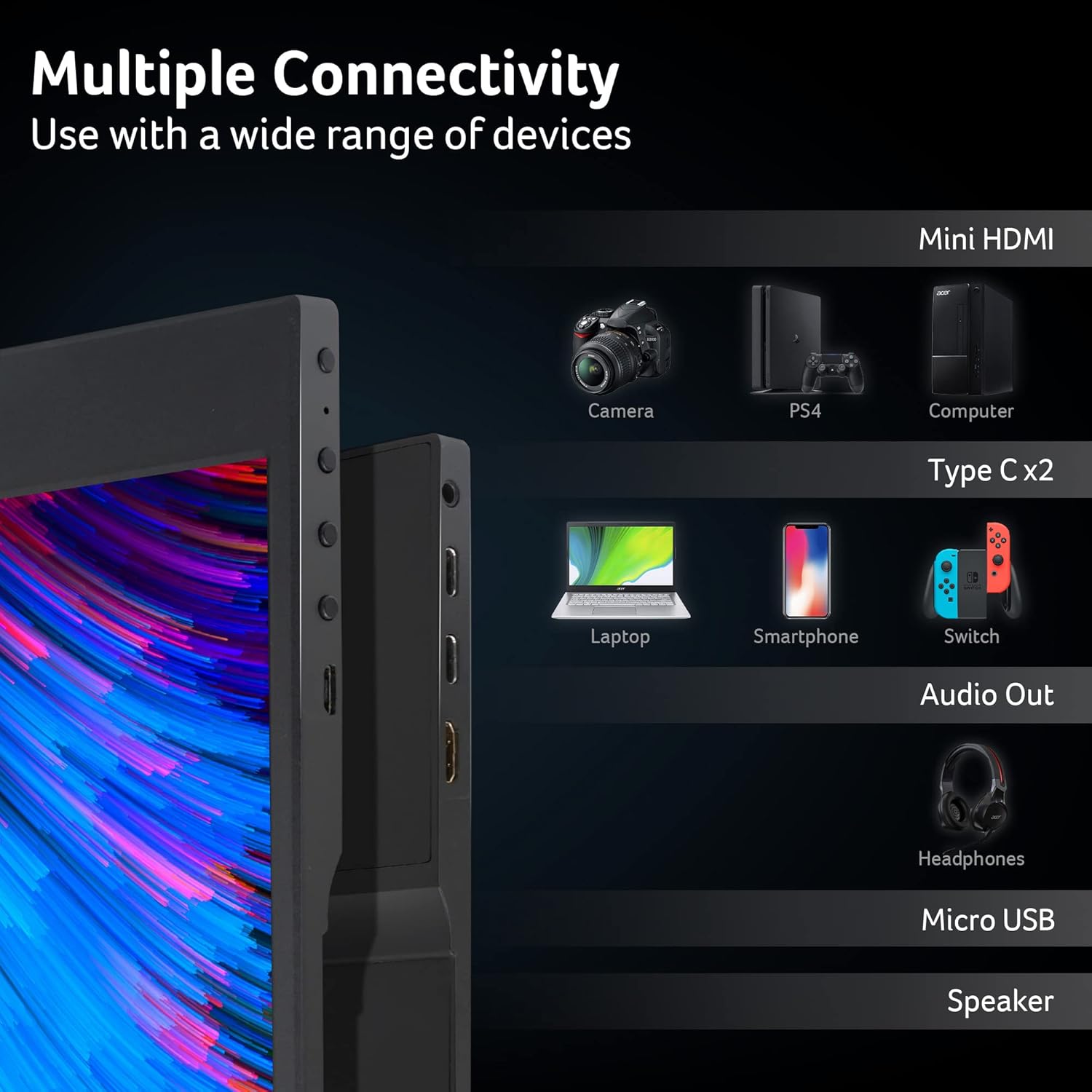 Monitor Portátil Acer Acer PM161Q Abmiuuzx 15.6" Full HD 1920 x 1080 IPS Diseño Ultra Delgado Premium Cubierta I Monitor Externo para Laptop PC Mac I 2 x USB 3.1 Tipo-C Puertos, 1 x Mini HDMI, 1 x Micro USB