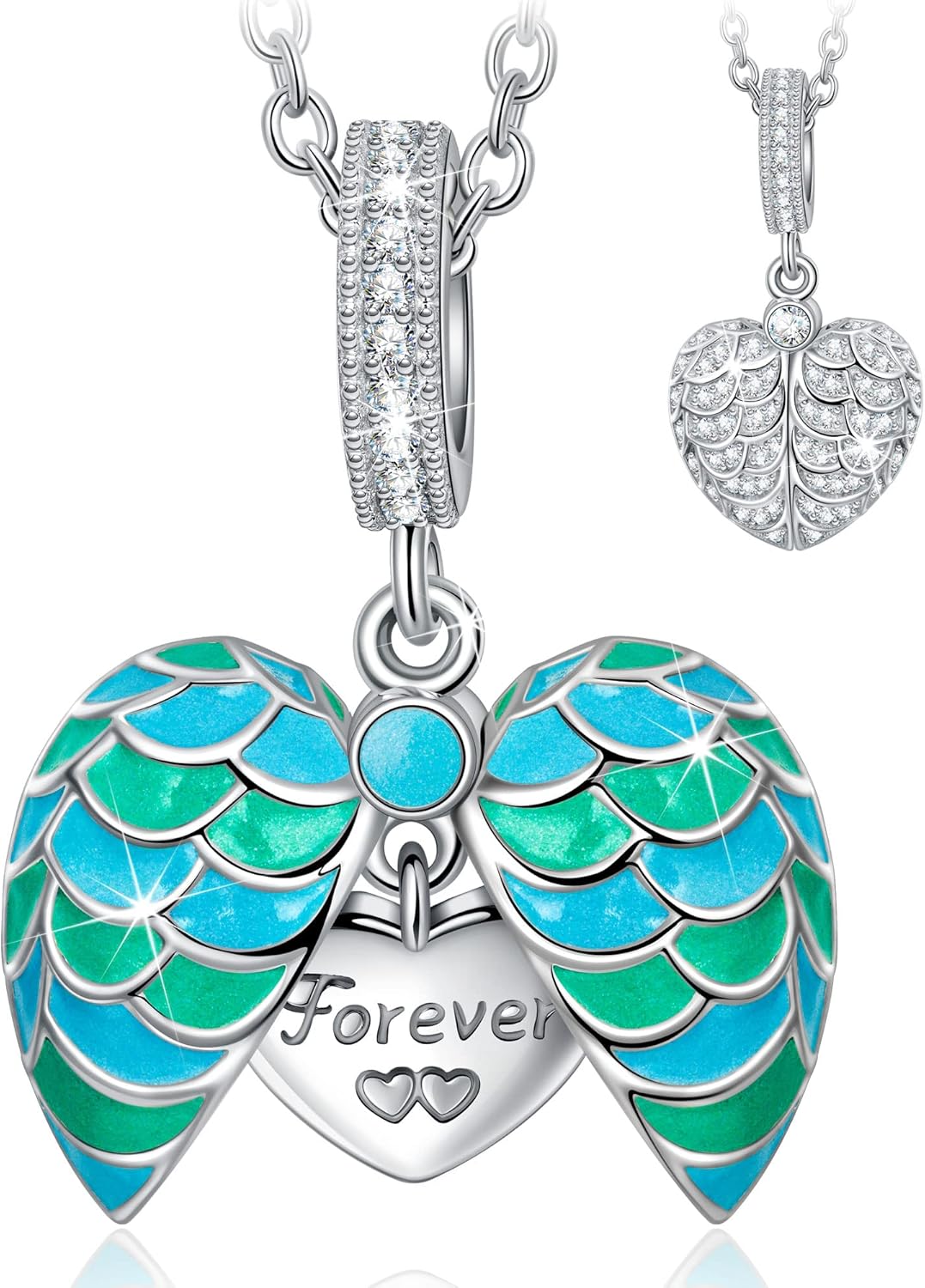 Kate Lynn ♥ I Love You Forever ♥ Angel Wing Heart Necklace Engraved Jewelry, 17.8"+2.0" Necklace, Packaged with Jewelry Box, Christmas Gift Birthday Gift Anniversary Jewelry Gift for Women, Symbol of Love, Beauty and Guardian