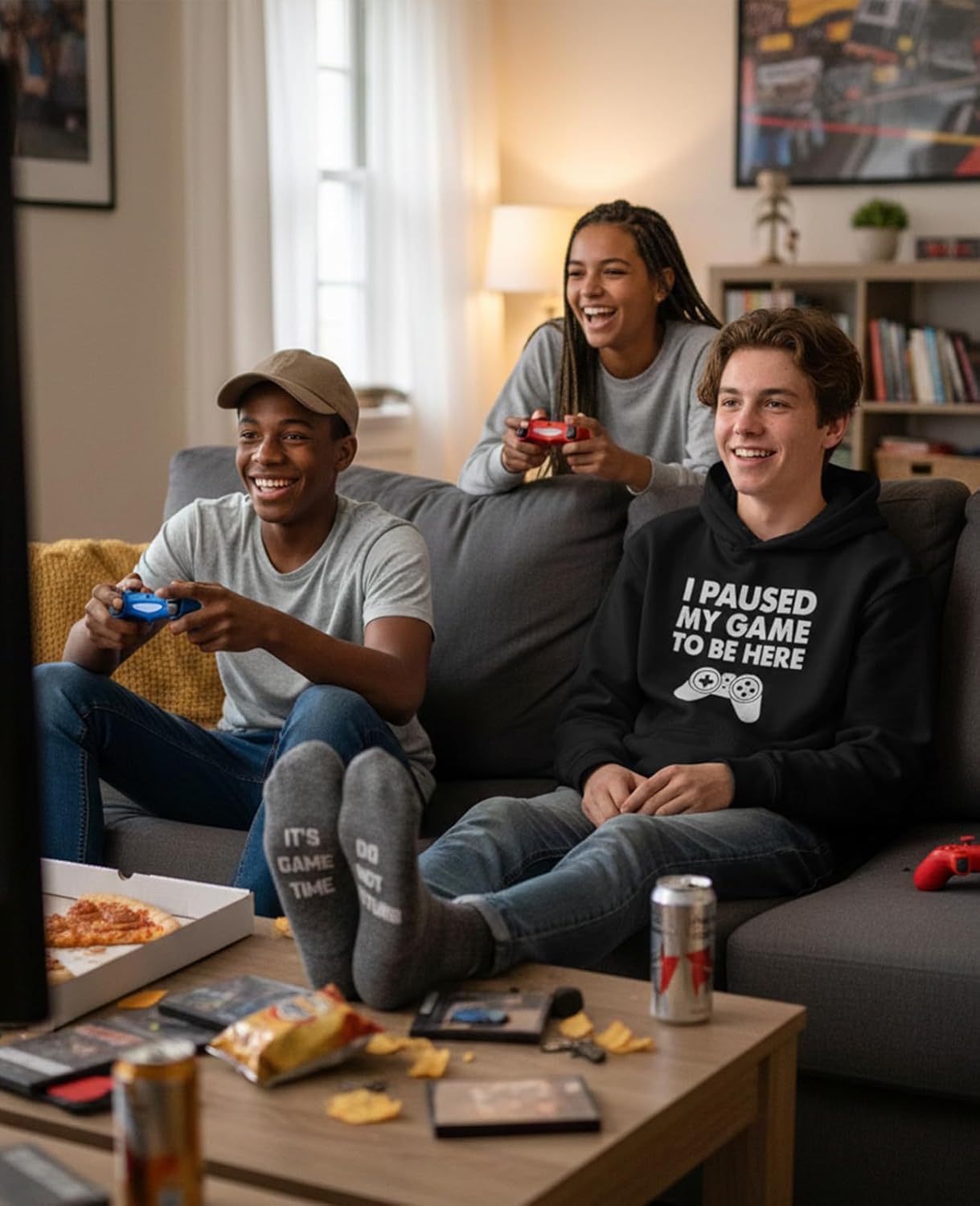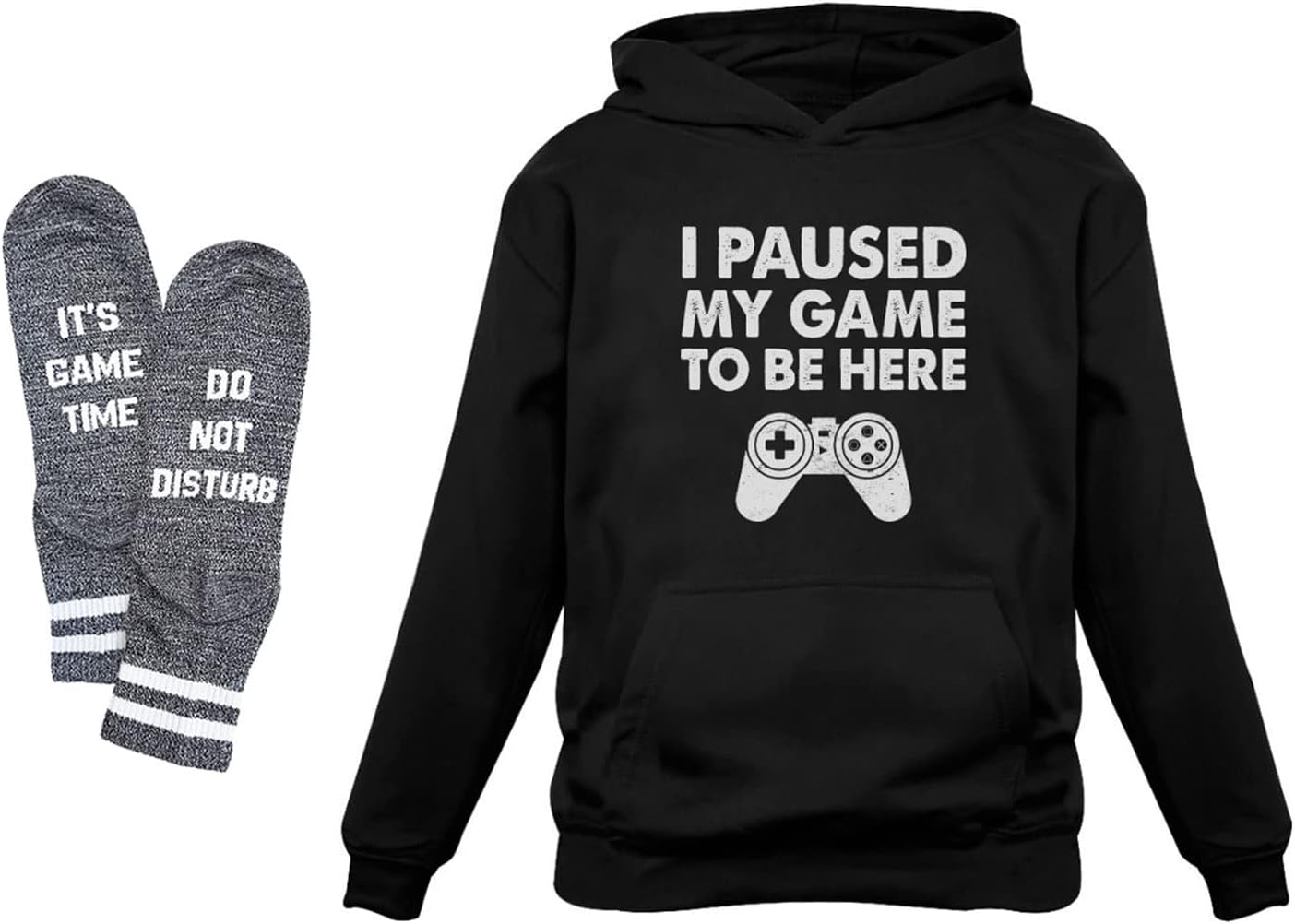Tstars Funny Gaming Hoodie for Men - I Paused My Game to Be Here Gamer Gifts Teen Boys & Fans of Video Games