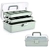 BTSKY 3-Layer Plastic Dividing Storage Box Craft Organizer and Storage with Adjustable Spacers Portable Handled Art Supply Organizer Multipurpose Home Utility Box for Medicine Sewing(Haze Green)