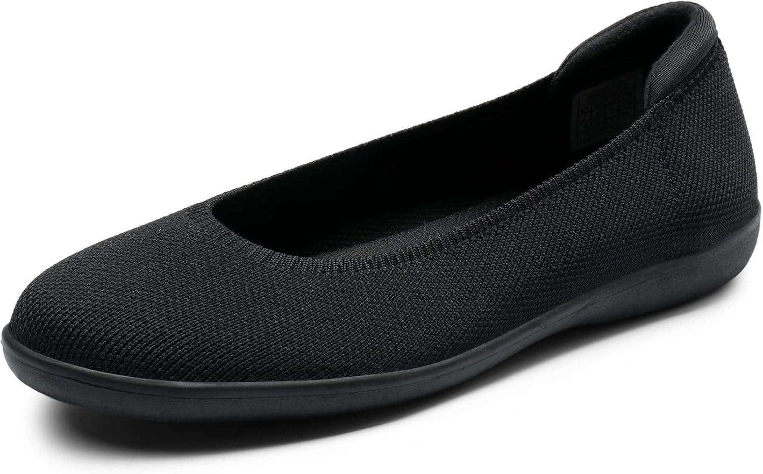 DREAM PAIRS Womens Comfortable Ballet Dressy Work Knit Flats - Round Toe Slip on Office Shoes, Black-Knit - 7.5 (Sdfa2312w)