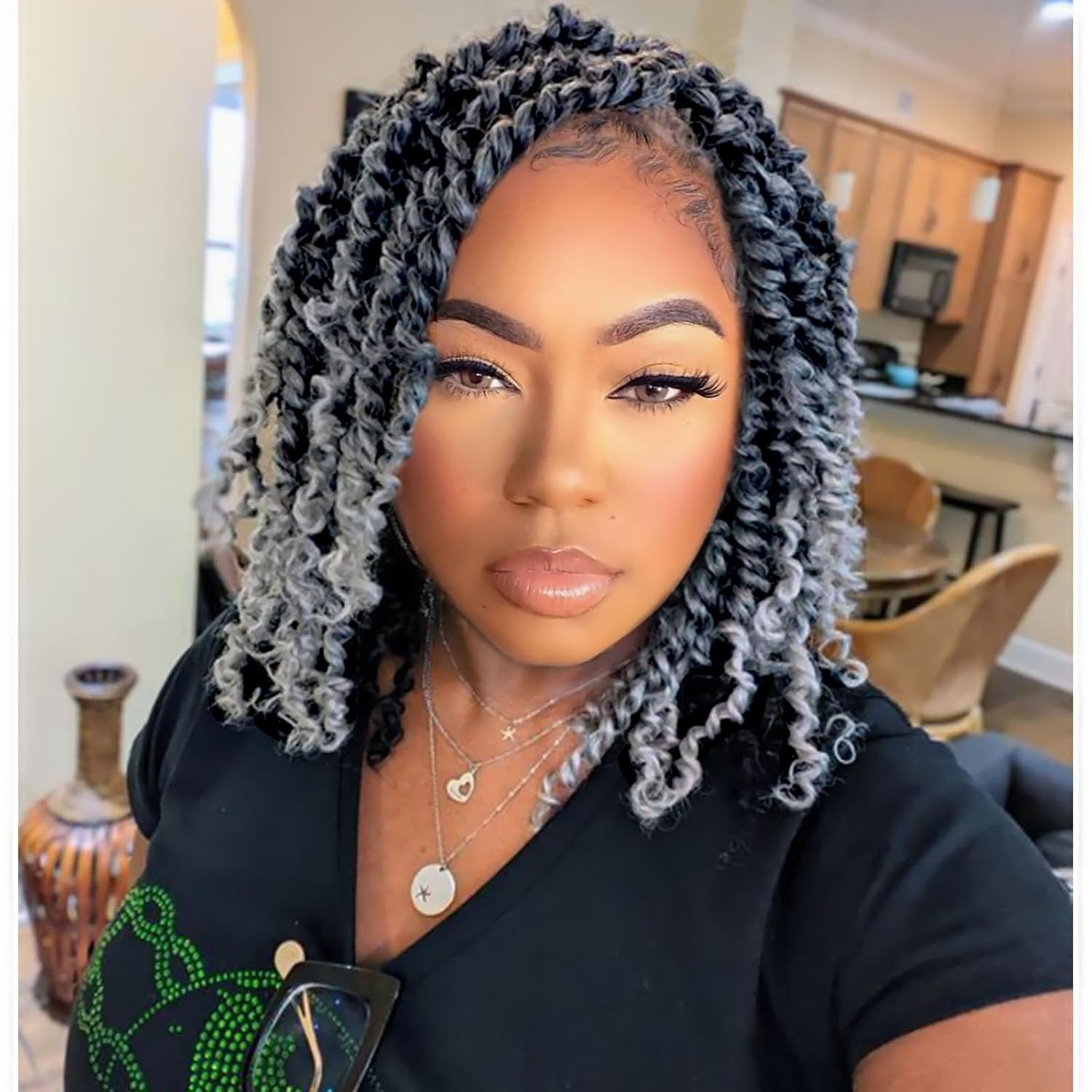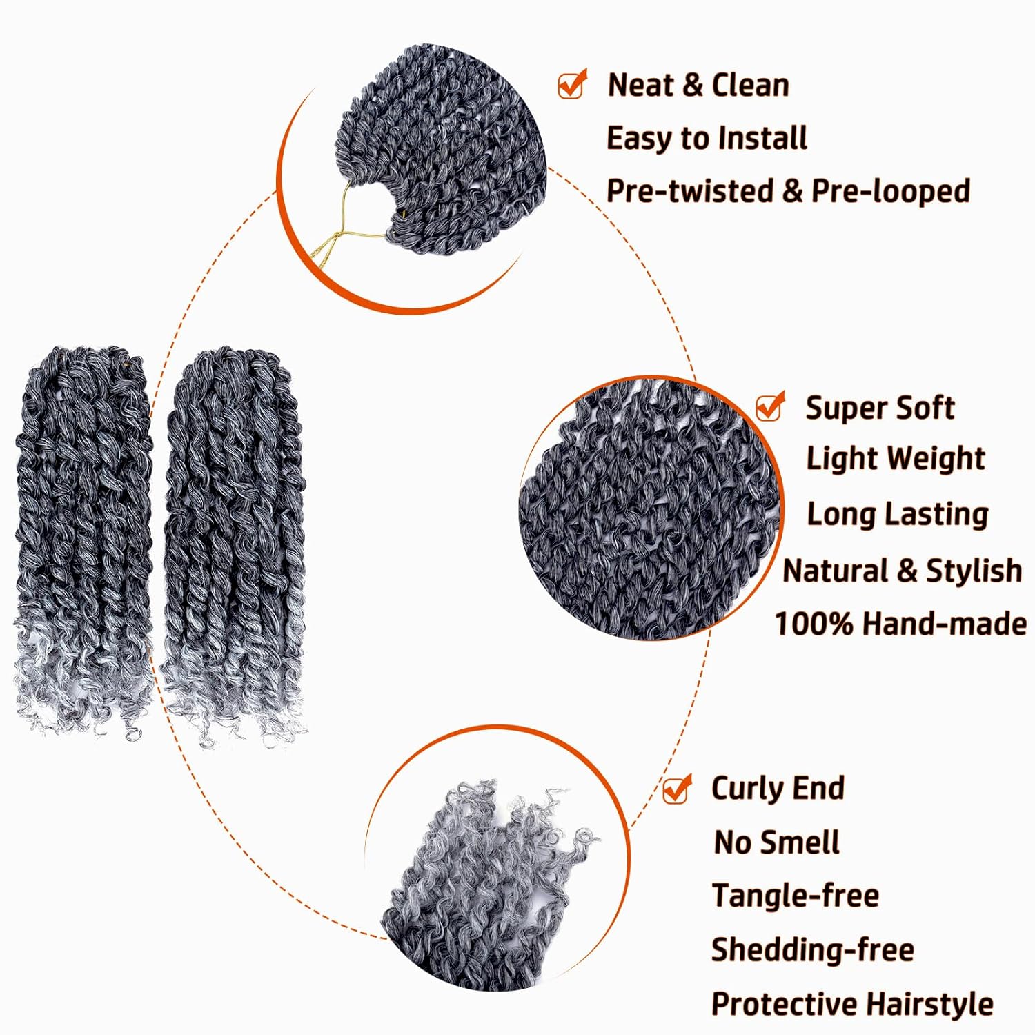 Pre-twisted Passion Twist Hair 10 Inch 8 packs Short Passion Twist Crochet Hair Pre-looped Crochet Braids for Women Gray Passion Twists Synthetic Curly Crochet Hair Extensions 1B/Gray
