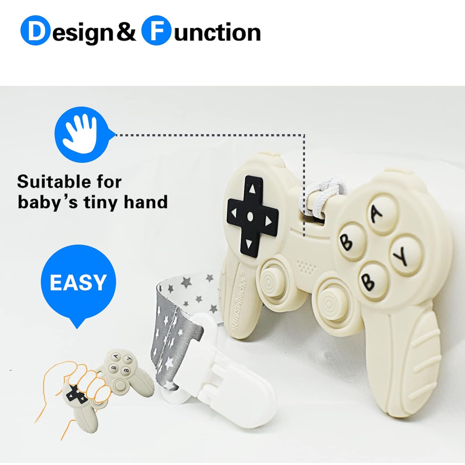 Baby Gamer Controller Teething Toys For Molars- Baby teethers with pacifier clip.Pop buttons silicone joysticks.BIGSPINACH was designed to be as real as possible with satisfying poppable buttons!