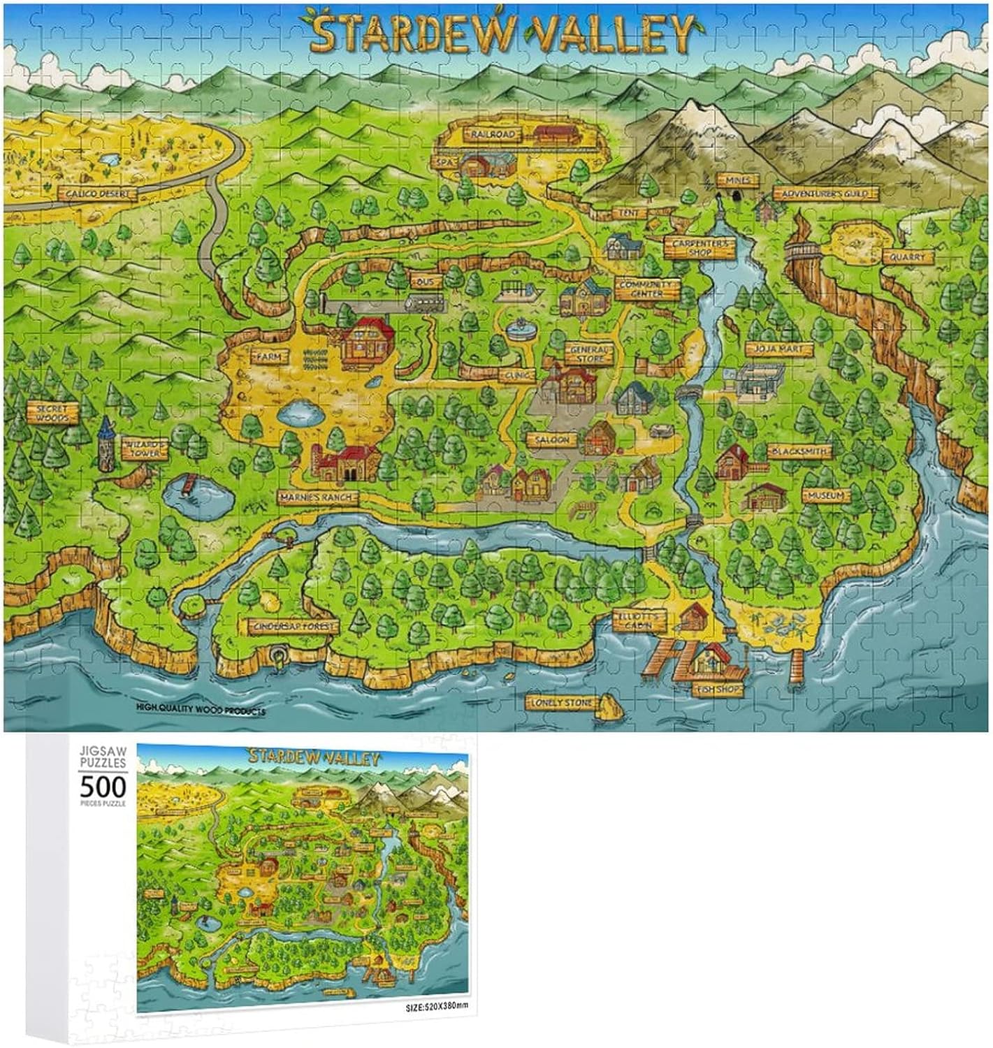 Rompecabezas con mapas de Stardew Valley para adultos, rompecabezas de 500 piezas para niños, adolescentes y familias mayores, rompecabezas de desafío, regalo del Día de la Madre, las piezas encajan perfectamente 20.5 x 15 pulgadas