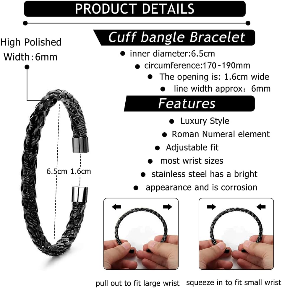 3pcs/set Classical Handmade Braiding Bracelet Hip Hop Men Pave CZ Leopard Head Roman Numeral Bracelet Stainless Steel Jewelry
