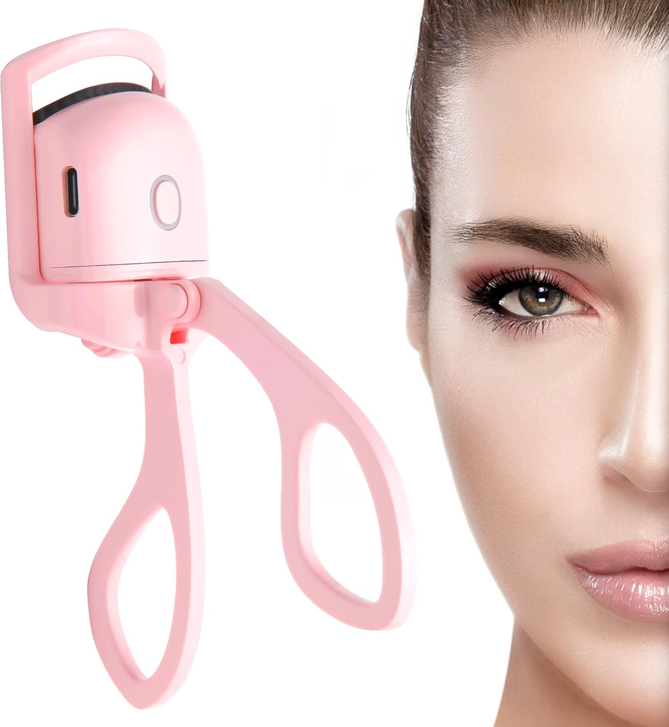 Heated Eyelash Curler, Eye Lash Curler, USB Rechargeable Electric Eyelash Curlers, 2 Heating Modes Quick Charging Natural Curling Eye Lashes for Long Lasting Pink