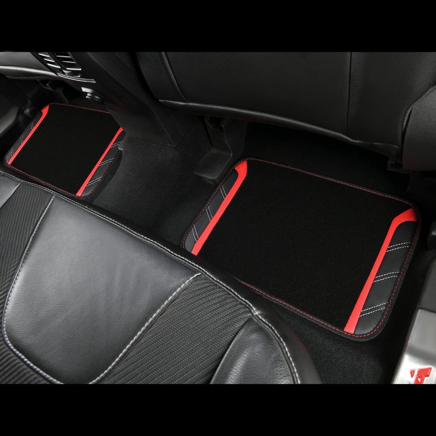 CAR PASS Leather Steering Wheel Cover and Waterproof Car Floor Mats,Microfiber Universal Car Combo Fit for 95% Sedan,SUV,Cars,14.5-15inch Sporty Anti-Slip Safety Comfortable Design(Black&Red)