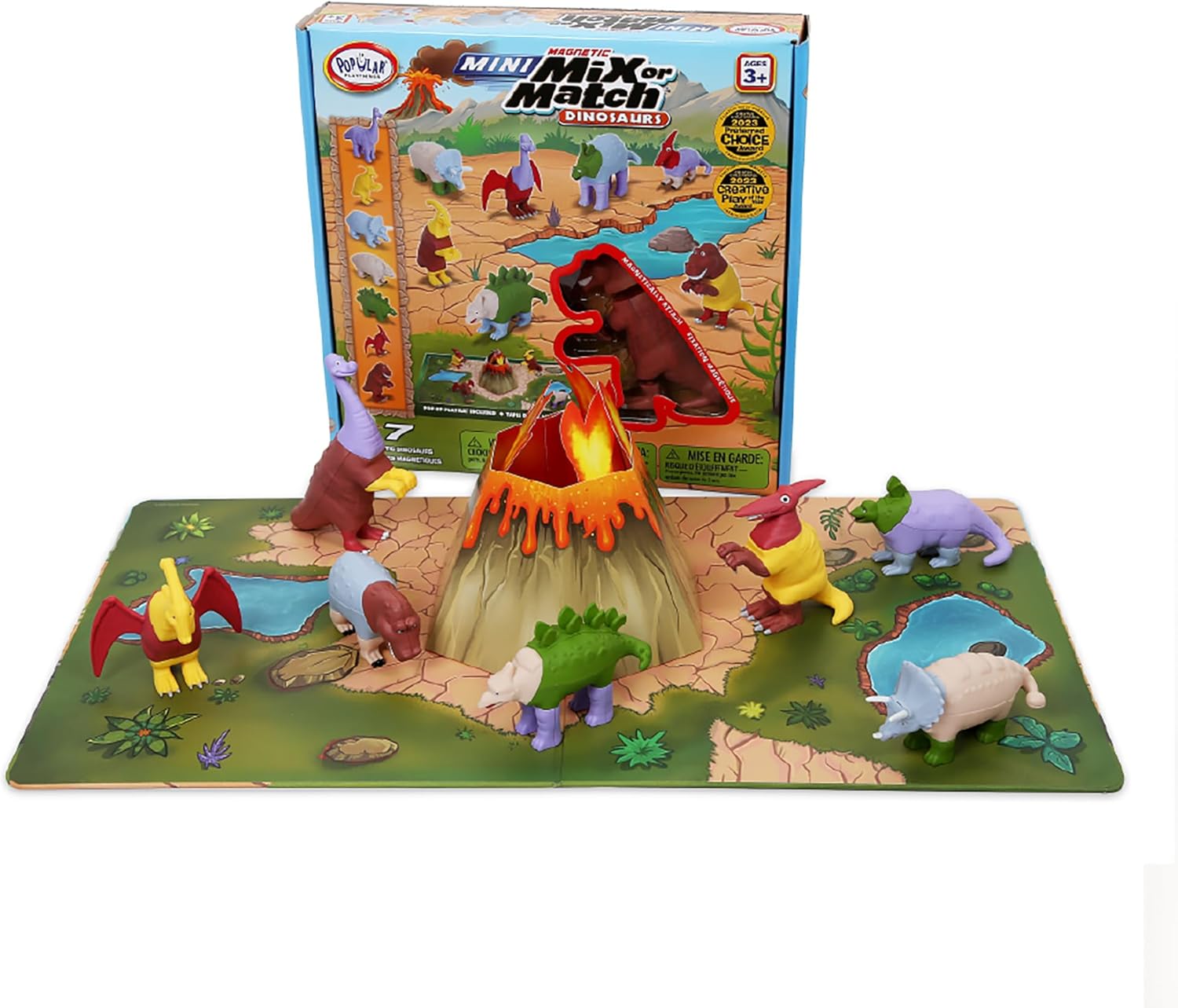 POPULAR PLAYTHINGS Mini Mix or Match Dinosaurs, Magnetic Toy Set with Pop-up Playmat, Set of 7