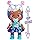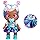 Viene con un atuendo único azul y blanco, brillante e iridescente.