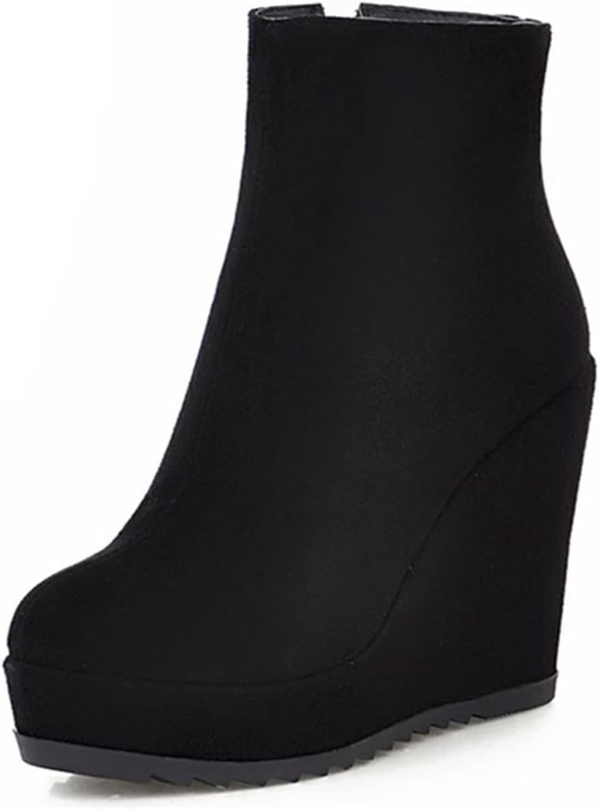 Betastella Women's Wedge Platform Ankle Boots Faux Suede Heels Zip Up Booties
