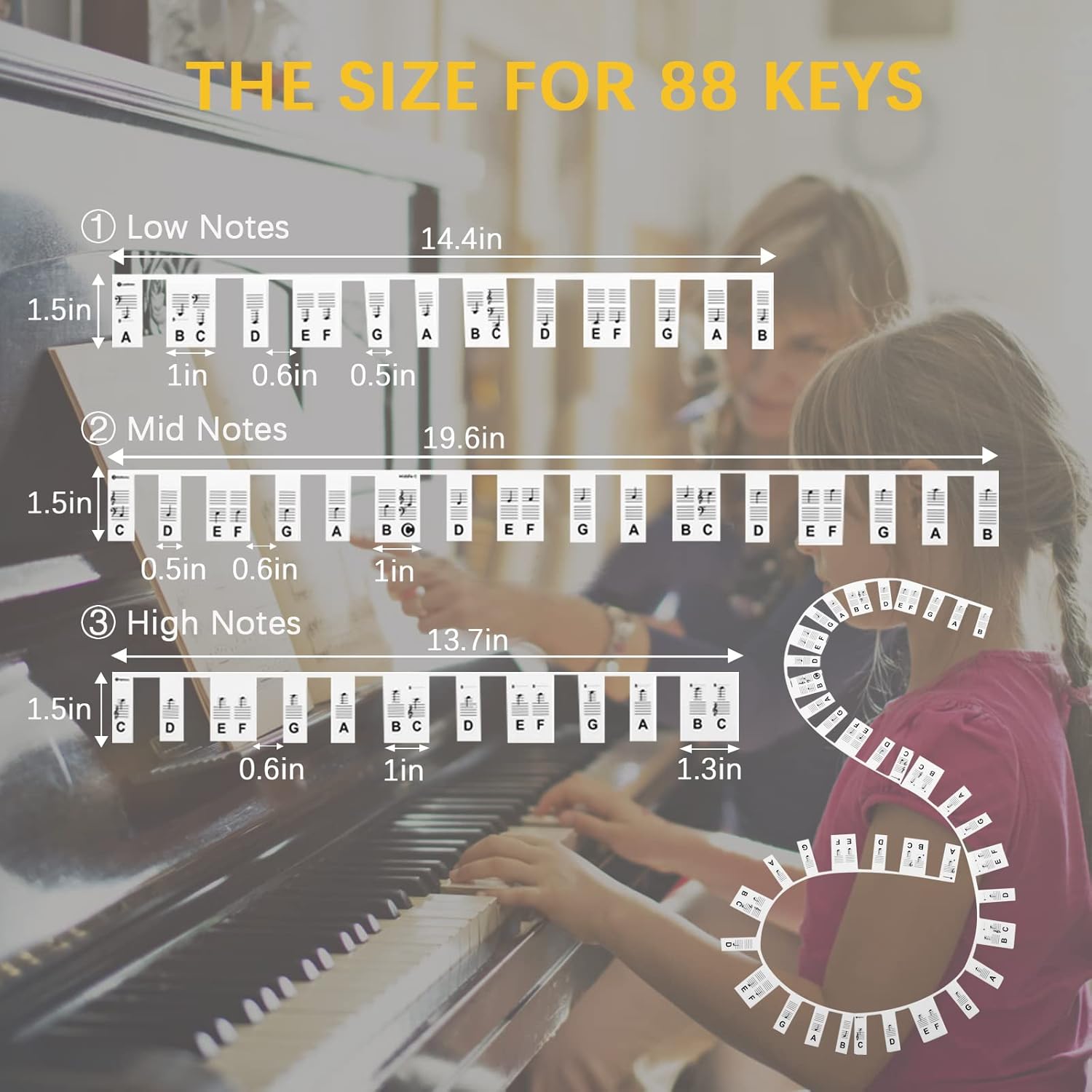 【Easy to Install】The piano letter stickers come in a reusable plastic case for easy storage and portability with three note strips for low-notes silicone piano tape ,mid-notes silicone piano tape and high-notes silicone piano tape. Tune the middle C before use, then match the keys to cover the notes, and you're done in seconds!