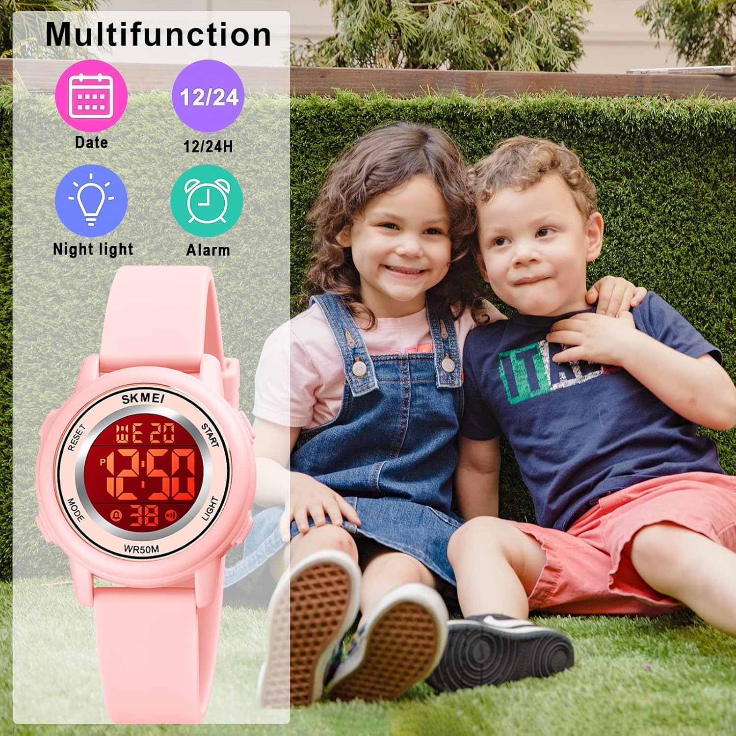 SKMEI Kids Digital Sports Watches with Colorful LED Backlight Waterproof Multifunction Watches for Boys Girls Gift