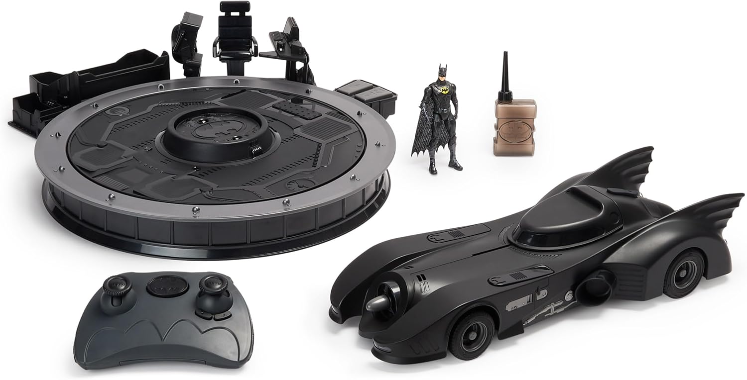 DC Comics, Coche Oficial Batmobile RC de 1989, Figura Exclusiva de Batman, Edición Limitada para Coleccionistas, Efectos de Humo, Base de Carga Batcueva, Edades 14+