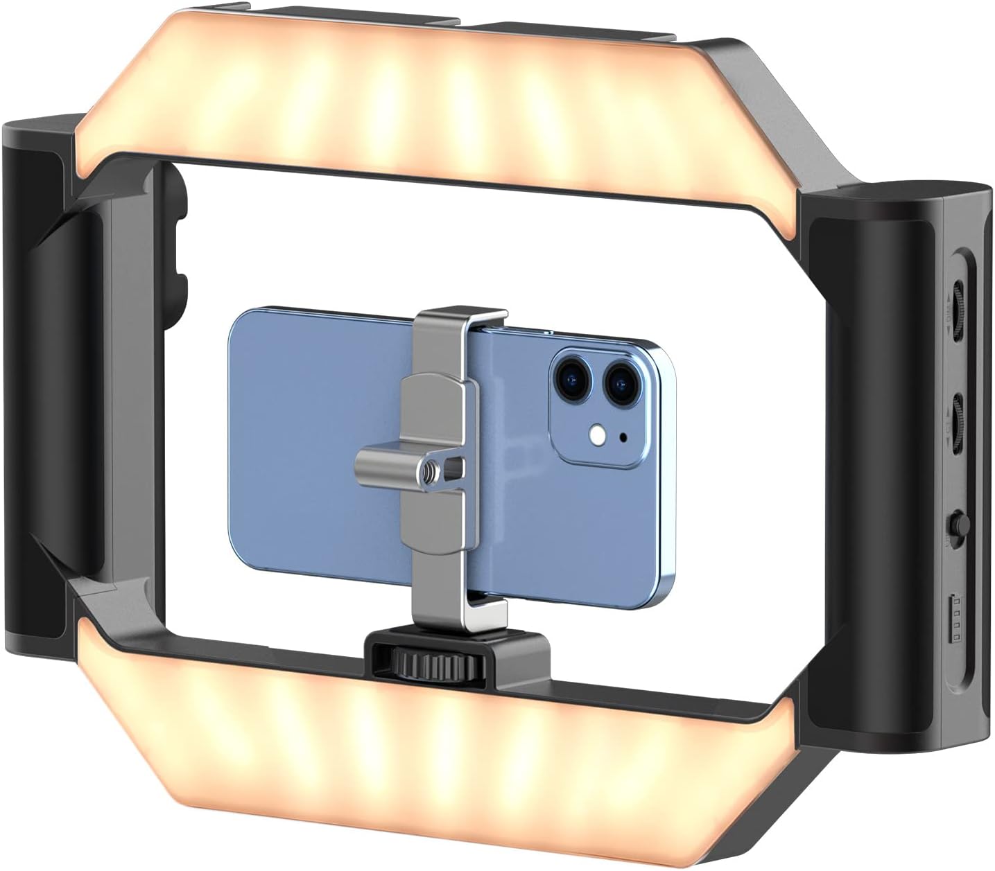 ULANZI Smartphone Video Rig w Light and Remote Control for Videomaker Filming Maker Video grapher, U-Rig Light Handheld Square Ring Light Phone Video Making Stabilizer Grip Cage w Cold Shoe Mount