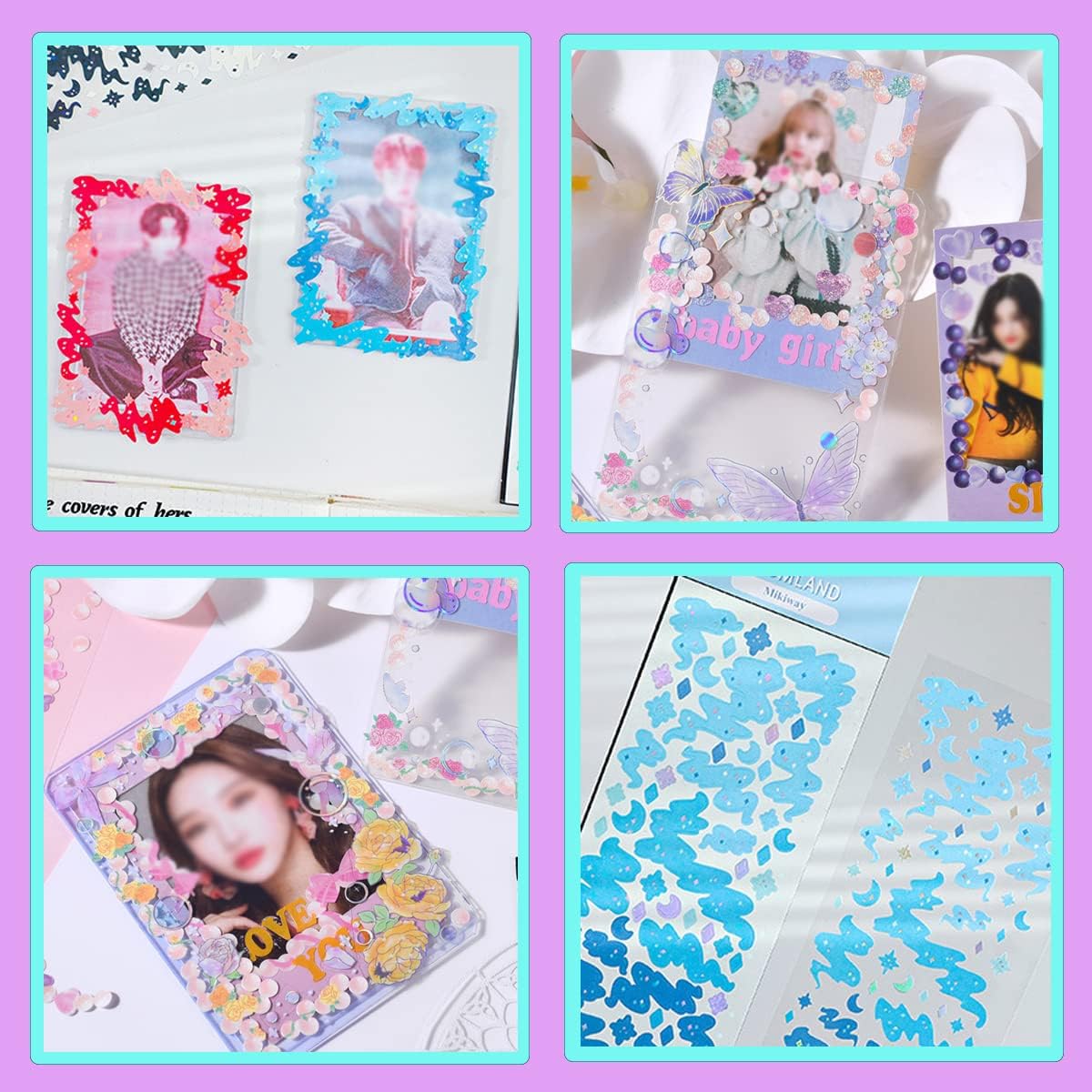 6 Kpop Photocard Holder Keychain Toploaders,50 Holographic Card Sleeves for Trading Cards Kpop Photocard,22 Ribbon Deco Korean Stickers for Photocards Binder Album Scrapbooking Top Loader