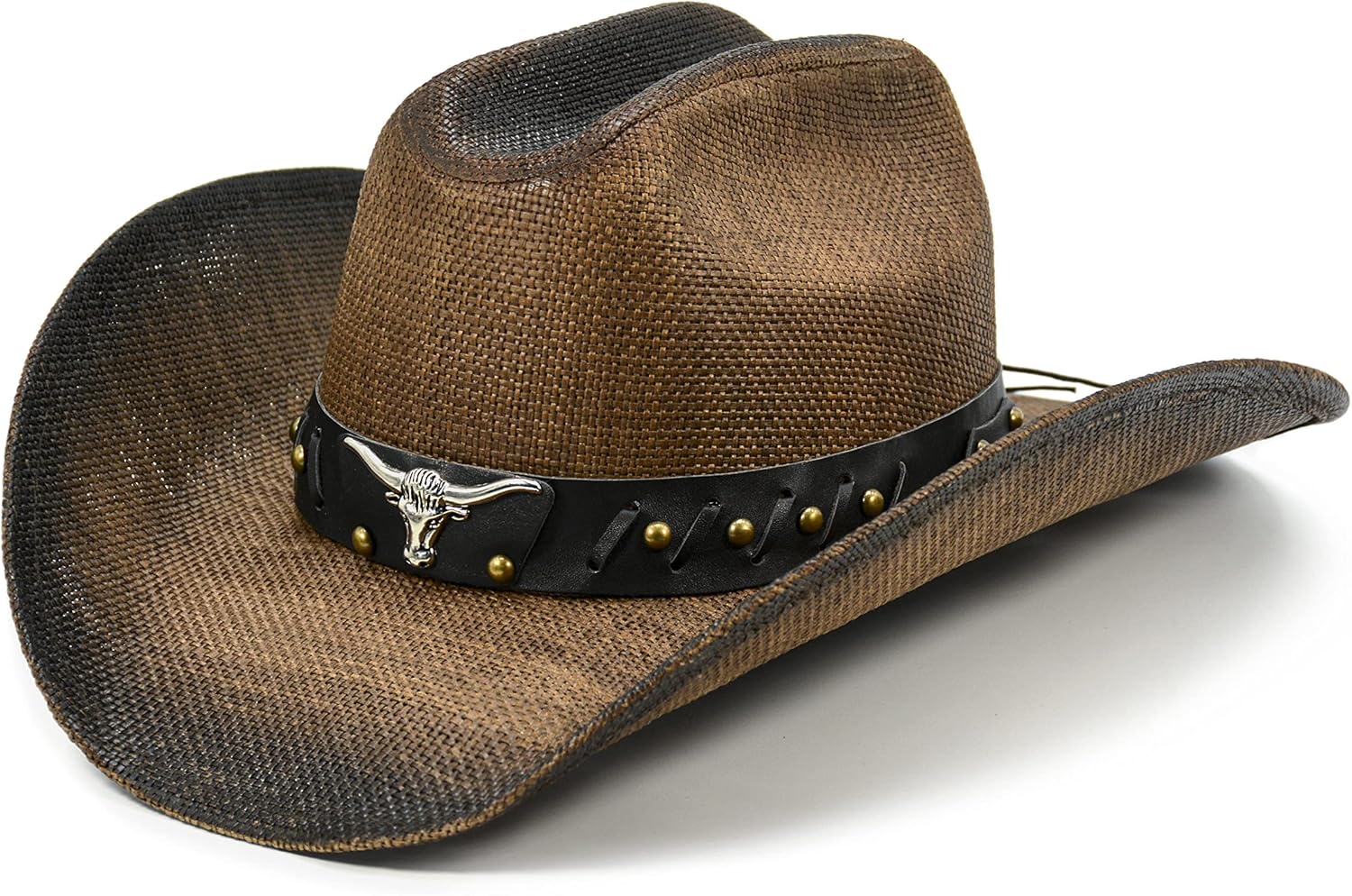 FLUFFY SENSE. Cowboy Hat for Women and Men - Straw Cattleman Crease Western Hats with Upgrade 4 inches Shapeable Wide Brim