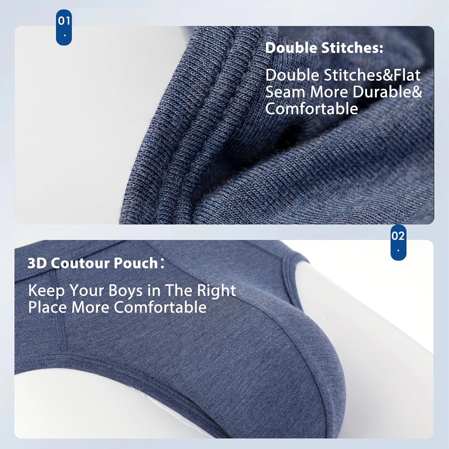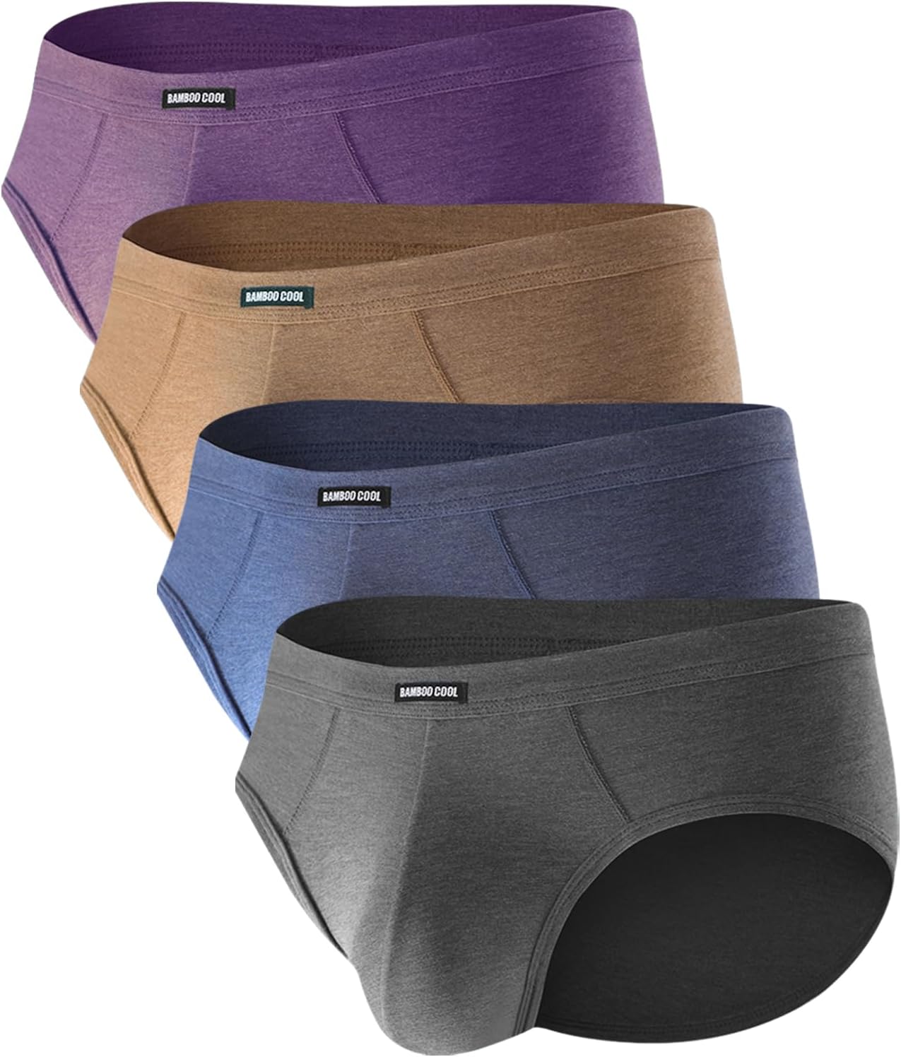 BAMBOO COOL Men's Tagless Briefs Coverd Waistband Comfort Soft Underwear with Contour Pouch Breathable Underpants, Multipacks