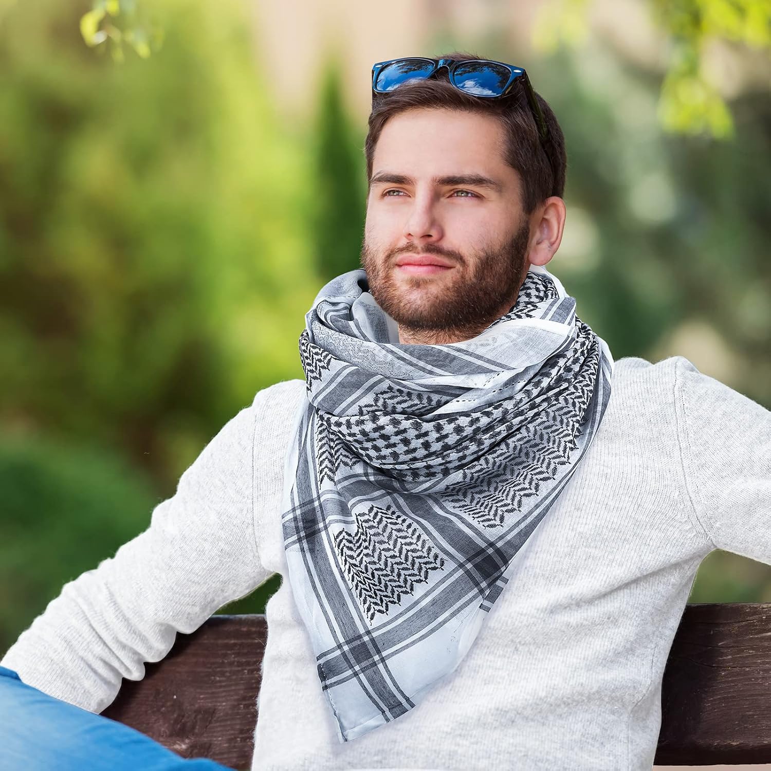 Arab Shemagh Muslim Keffiyeh Head Wrap Scarf Arabic Tactical Desert Headwear with Aqel Rope Halloween Costume Accessories
