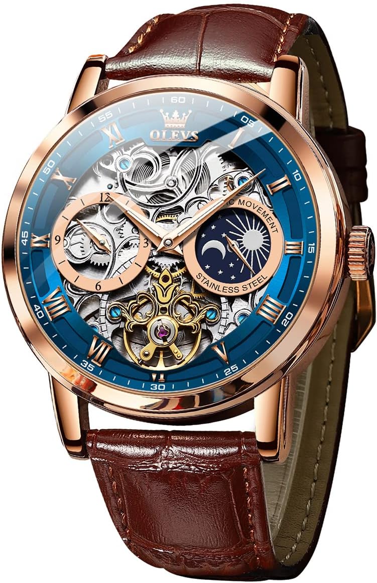 OLEVS Mens Automatic Watches Self-Winding Starry Sky Diamond Skeleton Luxury Wrist Watch Waterproof Luminous