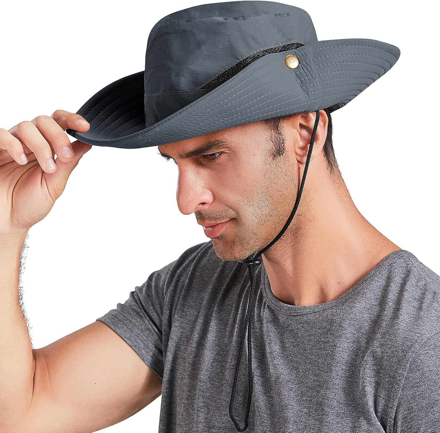 Sombrero de playa para hombre, gorro de safari, de malla UPF50+, de ala ancha, plegable e impermeable
