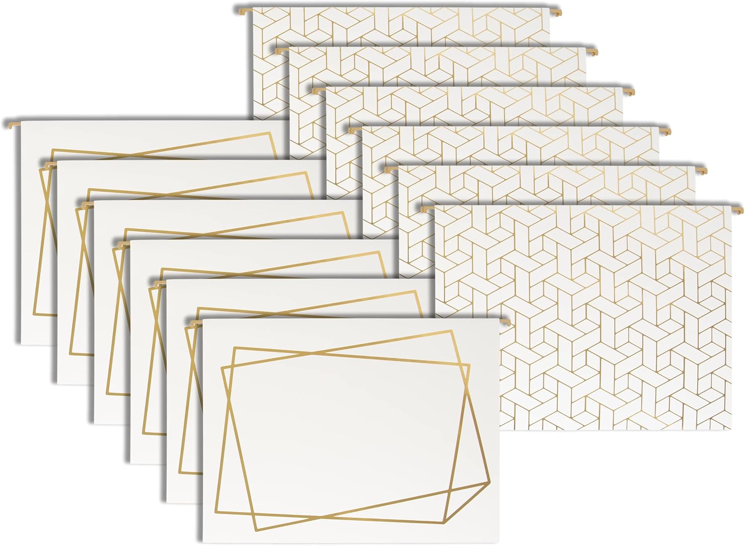 BLU MONACO 12 Pack Decorative Hanging File Folders – Letter Size with Adjustable Tabs – Cream White with Gold Foil Design – Cute and Pretty Filing Folders for Cabinet