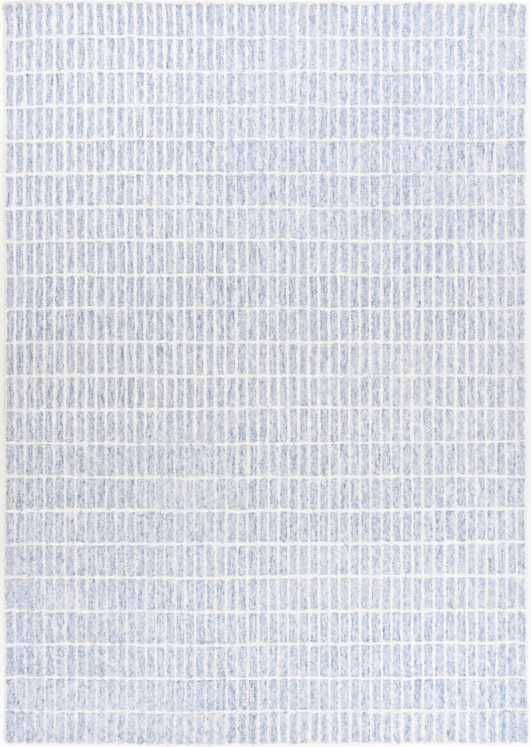 Hand-Tufted 100% Wool Area Rug – Unique Modern Geometric Grid Pattern, Soft Plush Textured Carpet for Living Room, Bedroom, Dining Room & Entryway (Blue, 8' x 10')