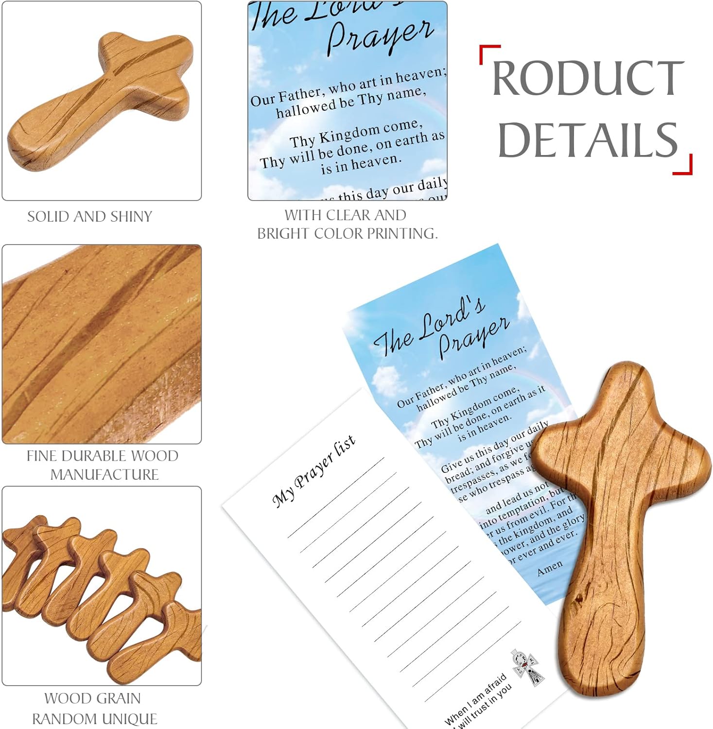 Juego de cruz de Jesús: recibirás 25 piezas de cruces de madera y 25 tarjetas de oración impresas a doble cara, una buena combinación y una gran cantidad que puede satisfacer tus necesidades de decoración.