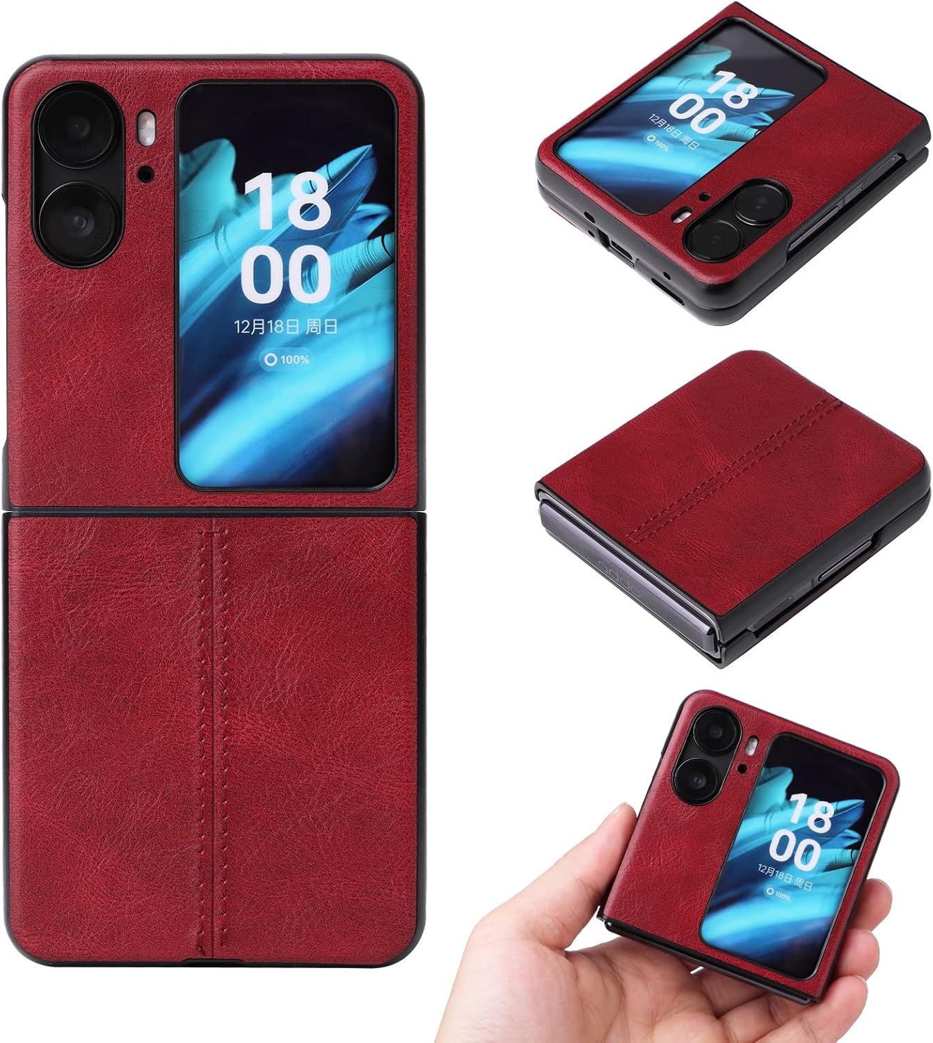 Case for Oppo Find N2 Flip Case Cover,Retro PU Leather Ultra Slim Shockproof Case for Oppo Find N2 Flip 5G CPH2437 PGT110 Case Red