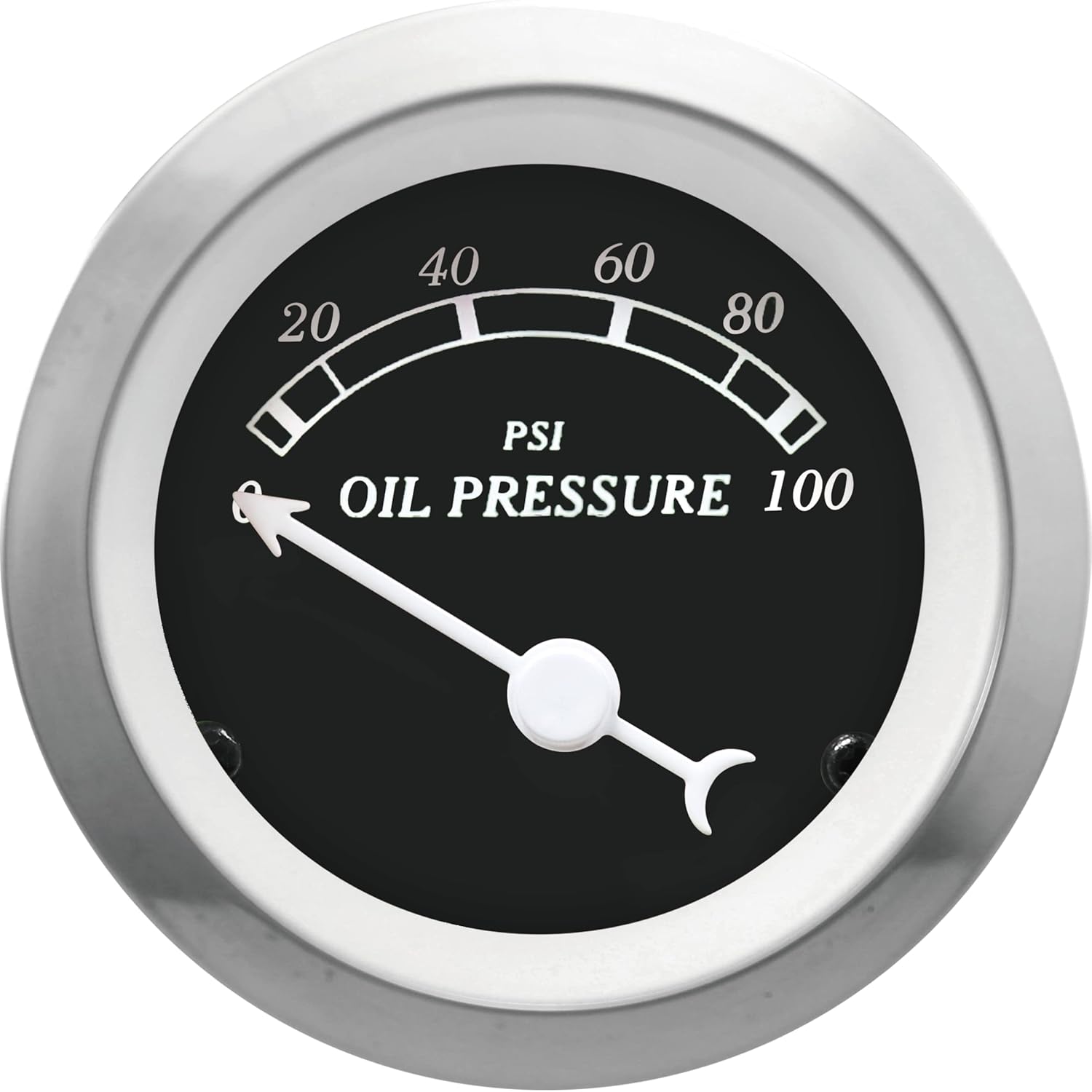 MOTOR METER RACING Serie Clásica Vintage 52mm 2-1/16" Indicador de Presión de Aceite PSI Dial Negro Aguja Blanca