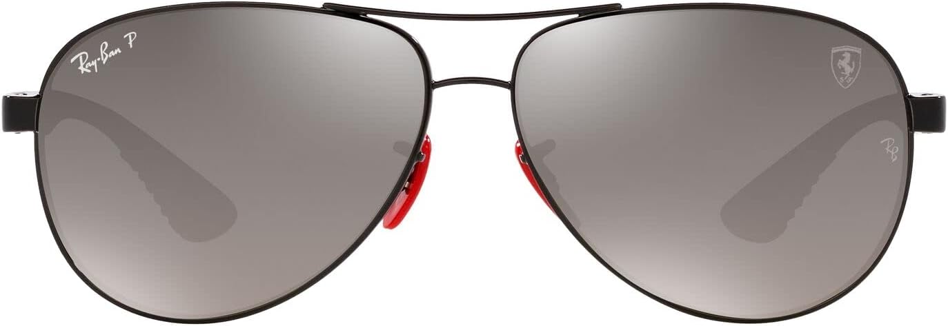 This distinguished take on Ray-Ban’s bestselling Aviator style, the RB8331M Scuderia Ferrari Collection frame features the Scuderia Ferrari logo at the temple. A premium carbon fiber temple and metal front ensure maximum comfort and quality. Available in a variety of frame colors finished with Ferrari accents, as well as solid, mirrored, gradient, or polarized lenses. Ray-Ban sunglasses sold by authorized sellers, like Amazon, are eligible for all manufacturer warranties and guarantees. Click on the Ray-Ban link above the product title to shop the entire Ray-Ban sunglass and eyeglass assortment.