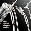 LATEST MAGNETIC DOCKING TECHNOLOGY - This unique patent-pending Socket-lock Guidance System with curved-surface design guides connecting magnets to align, so you can dock your hand shower literally with your eyes closed! Unlike other magnetic showers, AquaDance doesn't require additional hook or lock supports to remain secure. It finds its aim automatically, locking precisely and securely every time. Just place the back of AquaDance head against the bracket and watch it dock magically by itself!