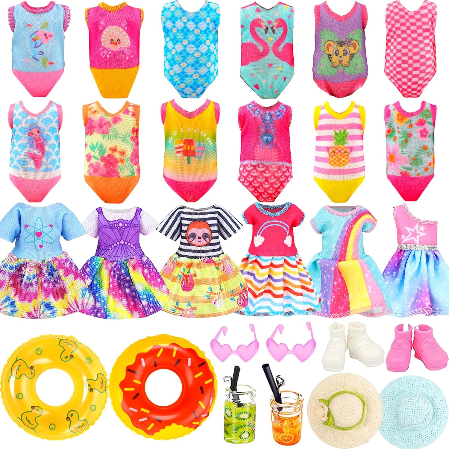 Mini 5.3 inch Doll Clothes and Accessories 6 Beach Swimsuits 3 Dresses with 2 Swimming Rings 2 Drinks 2 Hats 2 Glasses 2 Shoes