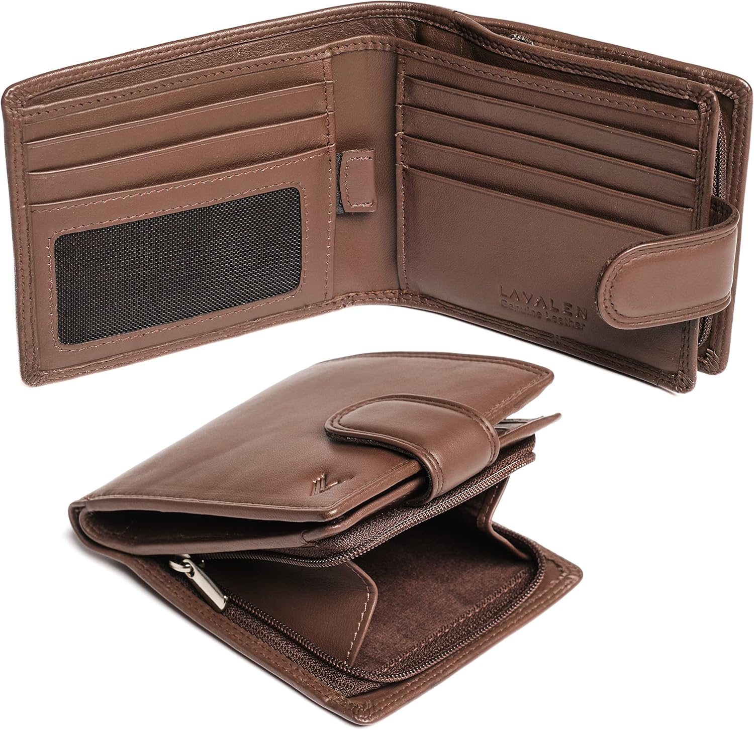 Soft Leather Wallet for Men - Mens Wallet Bifold with Zipper Coin Pocket - Holds Bills, Credit Cards, Coins - Carteras para Hombres Piel - Billeteras de Hombres Cuero Original - RFID Blocking.
