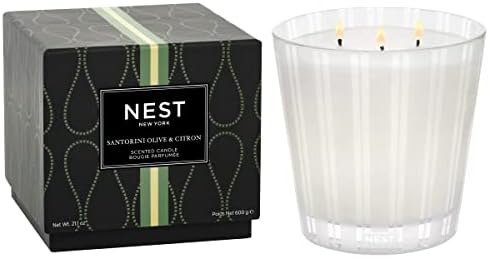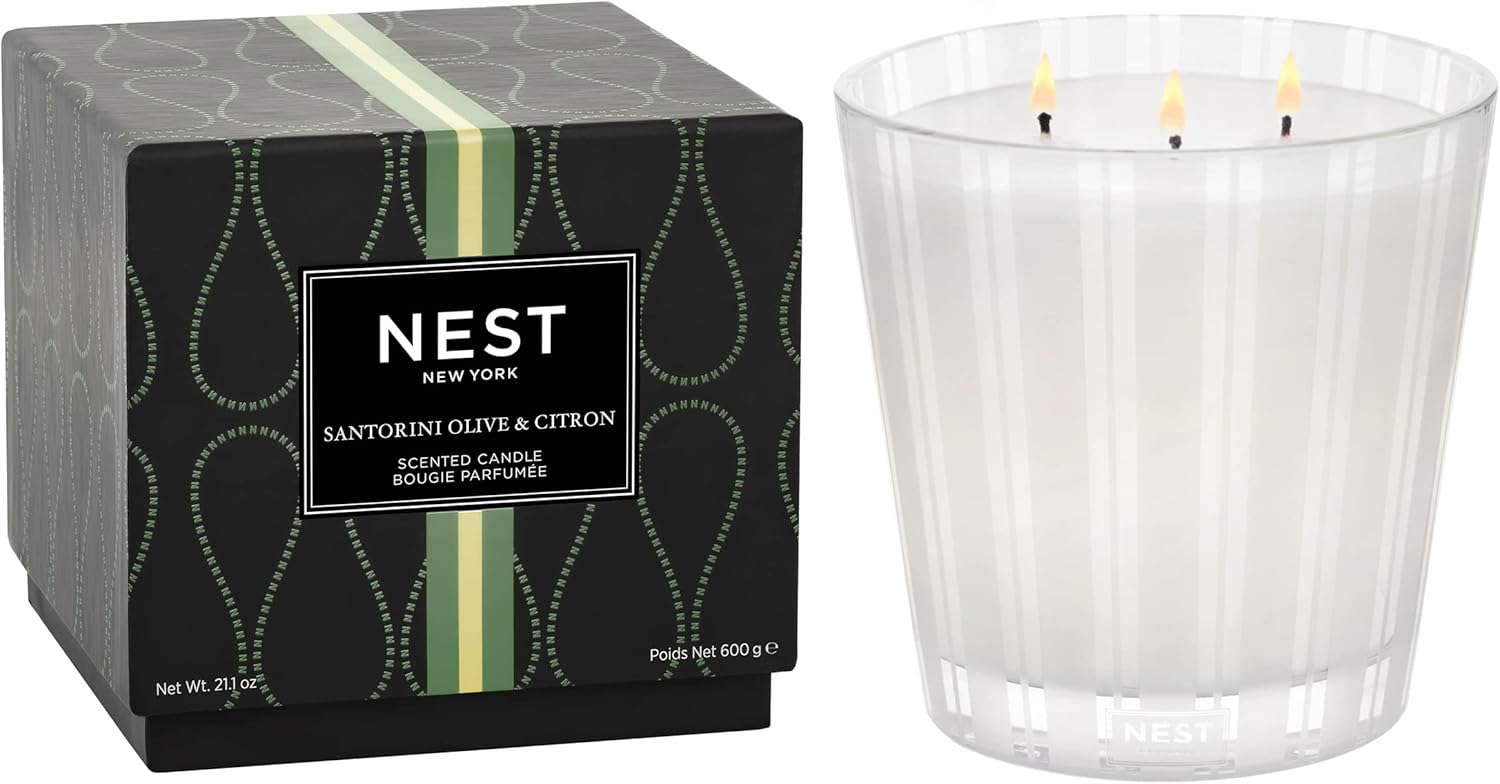 NEST New York Scented 3-Wick Candle, Santorini Olive & Citron - 21.2 oz - Up to 100-Hour Burn Time - Reusable Glass Vessel