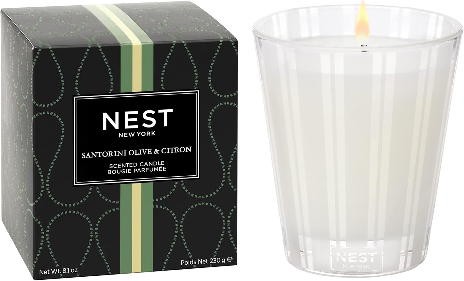 NEST New York Scented Classic Candle, Santorini Olive & Citron - 8.1 oz - Up to 60-Hour Burn Time - Reusable Glass Vessel