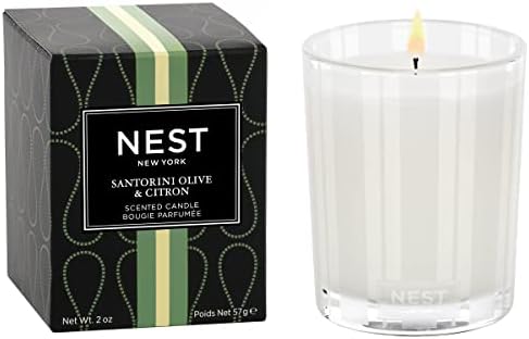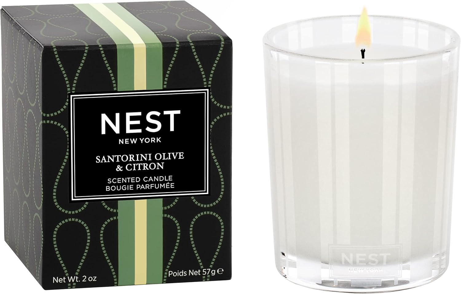NEST New York Scented Votive Candle, Santorini Olive & Citron - 2 oz - Up to 28-Hour Burn Time - Reusable Glass Vessel