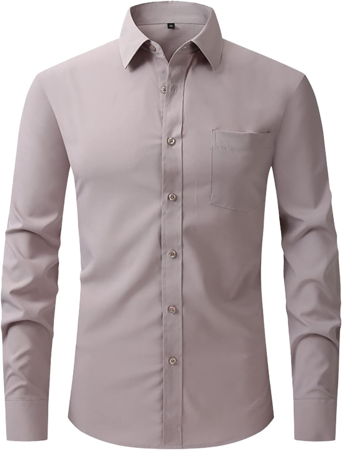 Men's Long Sleeve Dress Shirt Regular Fit Casual Button-Down Solid Shirt with Pockets