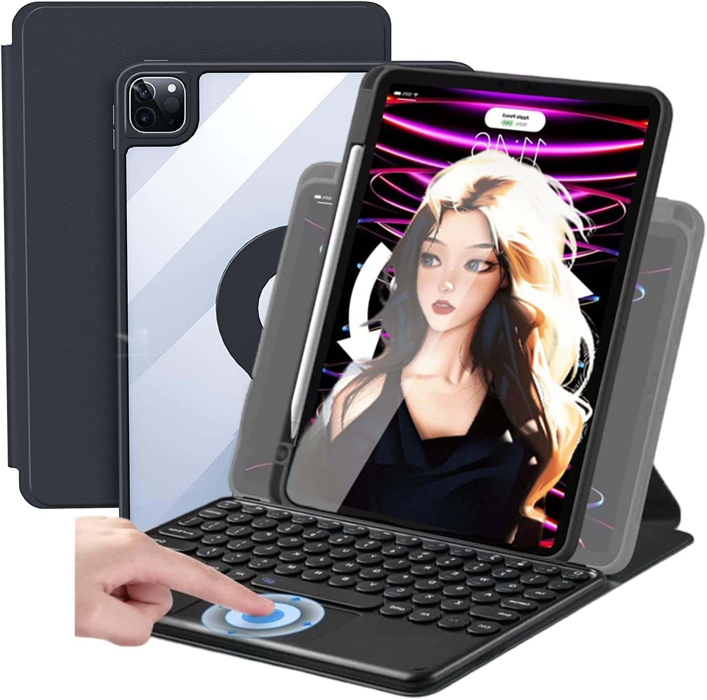 AnMengXinLing Keyboard Case for iPad 10.2 inch 9th/8th/7th Generation, Magnetic Rotating Detachable Clear Cover with Pencil Holder and Round Keys Touchpad Keyboard for iPad9 iPad8 iPad7 (Black)