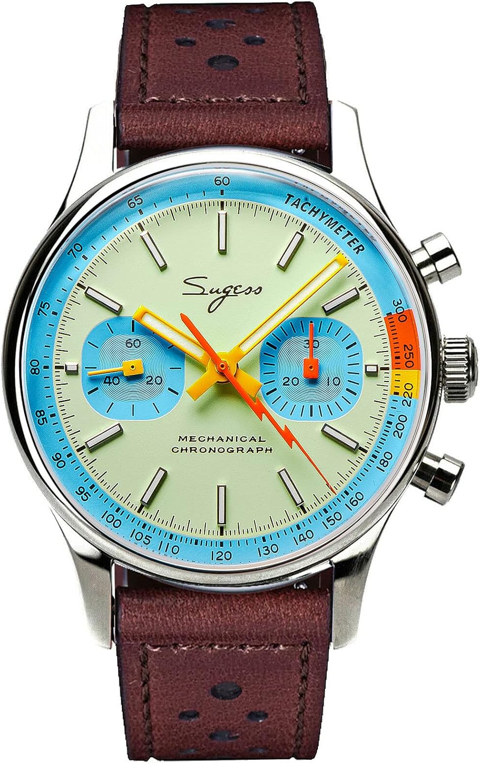 Sugess S387.01.Z Teal Blue Eyes SWAN Neck x Exhibition case Back Chrono Mens Watch Seagull 1963