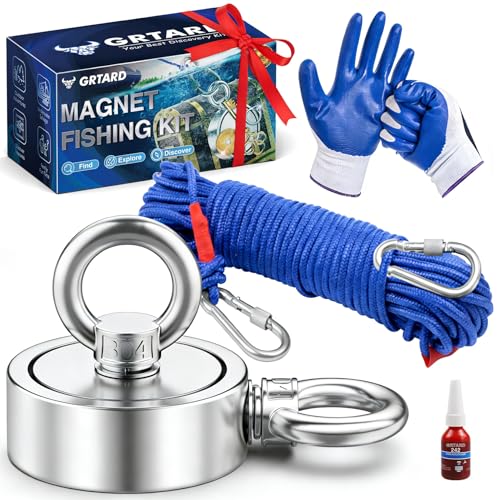 Magnets for Treasure Hunting: This powerful fishing magnet kit boasts a strength of up to 700 pounds, far surpassing most magnets on the market. Paired with a heavy-duty 65-foot rope, it allows you to easily retrieve objects covered by soil, vegetation, rust, and algae in rivers or lakes. Whether you're a beginner or an experienced magnet fisherman, this magnetic fishing ensures a highly effective and rewarding treasure-hunting experience.