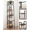 Ladder Shelf, Bookshelf Bookcase, Freestanding Corner Storage Shelve with 2 Hooks for Home Office, Living Room, Kitchen, Bedroom, Industrial, 5-Tier Rustic Brown BC03201B